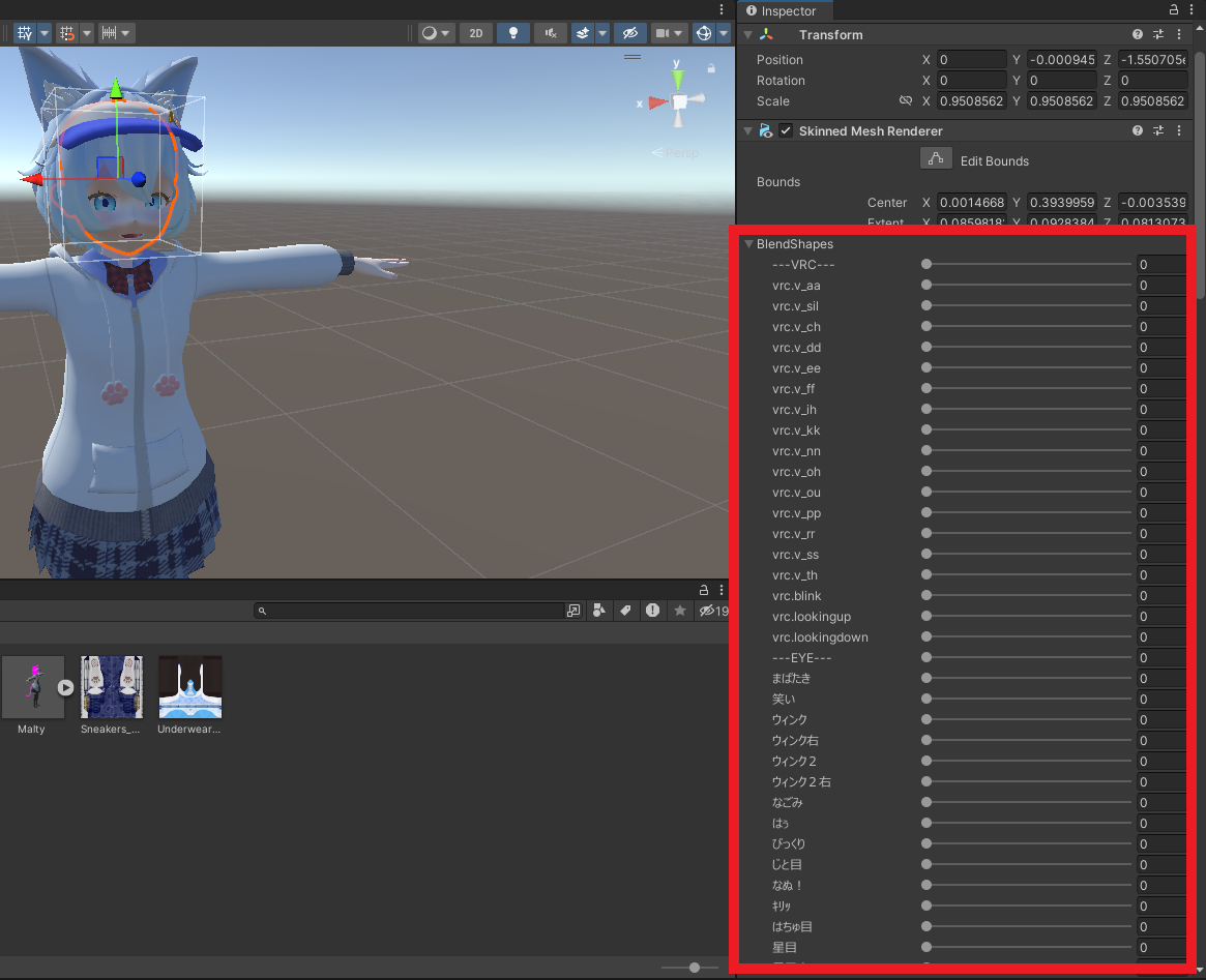혹시 눈치 챘는가? 쉐이프 키와 블랜드 쉐이프의 항목이 완전히 일치하는 것을. 그렇다. 쉐이프 키(Shape Key)와 블렌드쉐이프(BlendShape)는 완전히 같은 기능으로 3D 모델링 프로그램에서는 쉐이프 키, Unity에서는 블렌드 쉐이프라고 부르는 것일 뿐이다.
