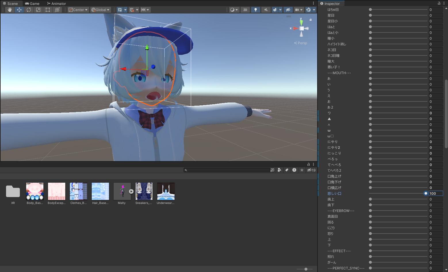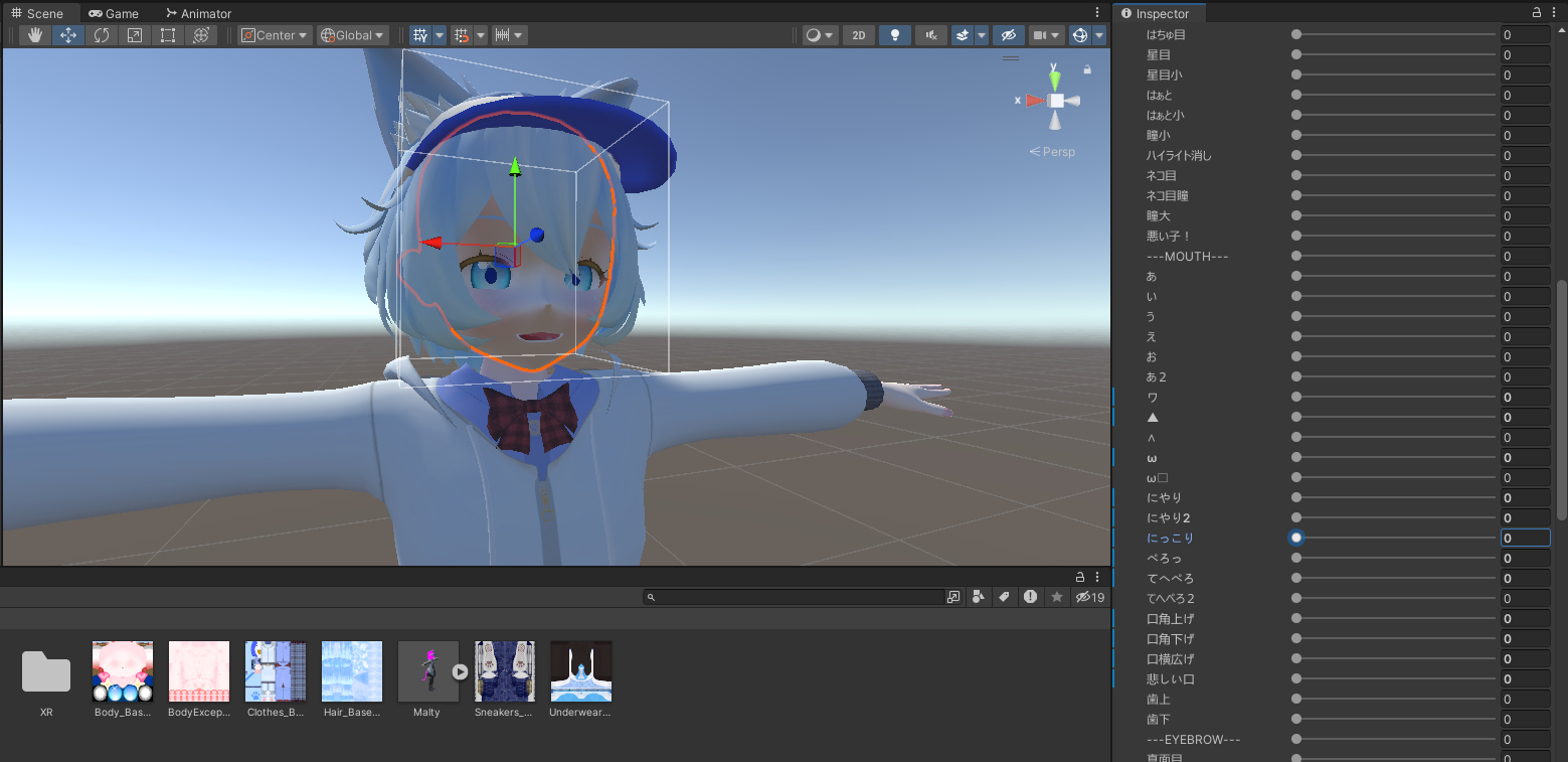 아바타의 표정은 기본적으로 이 기능을 통해 만들어진다. 쉐이프 키란 쉽게 말하면 점의 위치를 저장하는 기능으로 0~1의 값을 가지는 슬라이더를 통해 원래 위치와 저장한 위치 사이를 쉽게 이동할 수 있다.