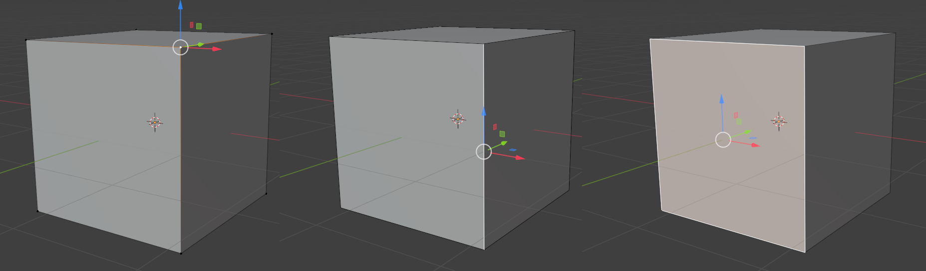 차이를 알겠는가? 차이가 없는게 정상이다. 왜냐하면 큐브의 오브젝트 중점과 메시 중점이 일치하고 있기 때문이다. 3D 모델링 과정에서 그렇게 설정했다.
