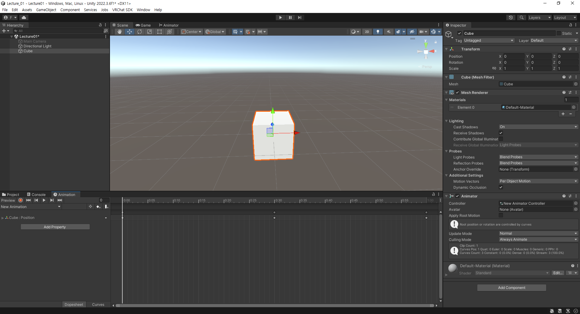 애니메이션, 우리가 다룰 Unity의 애니메이션이란 쉽게 말해서 오브젝트의 각 요소가 어떻게 변화하는지이다. 예를 들어 한 오브젝트를 (0,0,0)에서 (0,0,10)으로 이동시키거나 3초 뒤에 비활성화해서 안 보이게 한다거나. 즉, 오브젝트의 모든 변화는 애니메이션이라고 할 수 있다.