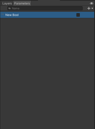 Animator탭의 Parameters탭에서 +버튼을 누르면 변수를 추가할 수 있다. 오늘 만들 애니메이션 알고리즘은 복잡한 알고리즘이 아니므로 Bool 변수면 충분하다. 파라미터의 이름도 실제로 아바타 제작을 할 때는 잘 정하도록 하자. 넣을 기능이 많아질수록 많아지는 것이 변수, 즉, 파라미터이다.