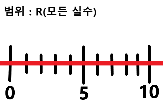 실수 집합은 점이 아니라 아예 선으로 표시되어 있다. 이 선은 단순 선이 아니라 무수한 점이 선처럼 보이는 것이다. 이것이 의미하는 것은. 1, 2, 3, 4, 5 만이 아니라 0.001, 0.002, ..., 0.099, 0.1...이런식으로 가령 0과 1 사이라 하더라도 유리수와 무리수를 포함한 모든 수를 포함하는 것. 그것이 바로 [수가 연속되다]의 정의인 것이다.