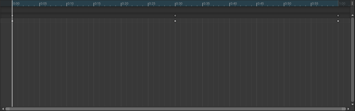 - 키 프레임 추가 : 커서의 위치에 선택한 프로퍼티의 키 프레임을 추가한다. 아무 프로퍼티를 추가하지 않았다면 모든 프로퍼티의 키 프레임을 추가한다.
