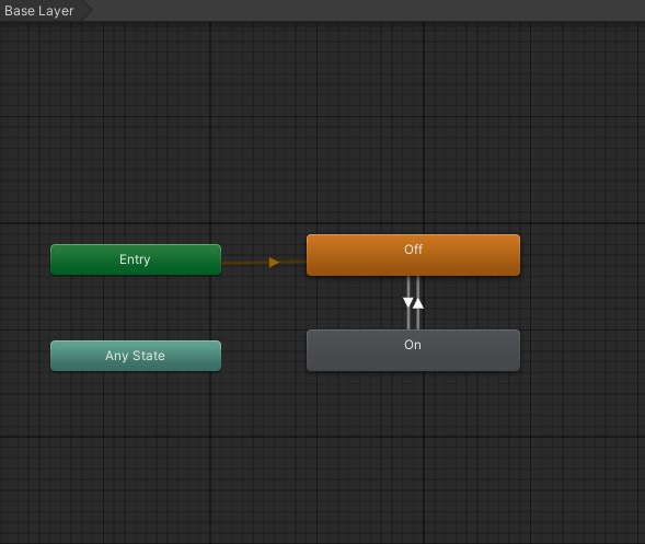 - Entry 노드 : 컨트롤러 파일이 기동됨과 동시에 실행될 애니메이션과 연결한다. Entry와 연결된 애니메이션 클립과 트랜지션은 주황색으로 표시된다. 또한 주황색 트랜지션은 수정할 수 없다.