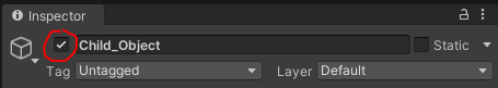 아주 간단하다. 오브젝트를 선택했을 때 나오는 Inspector탭의 가장 상단에서 저 체크박스를 체크하면 활성화이고 체크를 풀면 비활성화 상태가 된다. 비활성화 상태의 오브젝트는 Scene창에서 안보이게 된다.